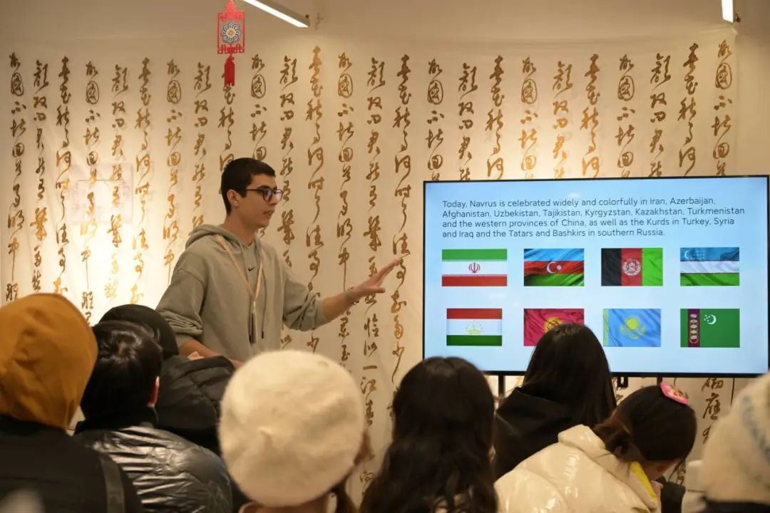 乌兹别克斯坦职工DUSTNAZAROV JASURBEK详细介绍诺鲁孜节的历史起源和产生背景。他介绍到,乌兹别克斯坦的“新年节”——诺鲁孜节是为进入春耕生产,绿化、美化、净化环境做准备的节日,期间乌兹别克族人通过举办音乐会、摔跤、植树、赛马等活动来庆祝这一节日。此外,他还讲解了特色节日美食Sumalak、Palov、KokSomsa,让大家深刻体会乌兹别克族丰富的文化内涵和民族特色。