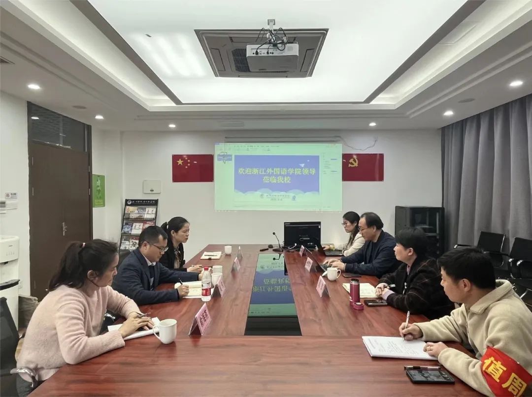 杭州市钱塘外语公司董事长张军林对陶伟一行的到来表示欢迎,介绍了公司作为首所“名校广场”的办校理念、教学特色、文化活动等。张军林表示希望能和高校加强合作,创新共建形式、扩宽共赢维度。陶伟介绍了公司和公司的基本情况,重点阐述了公司的人才培养体系和育人成果。双方就外语教师人才培养研究、员工实习实践合作、共建课程和团队共享等方面深入交流,并达成合作意向。