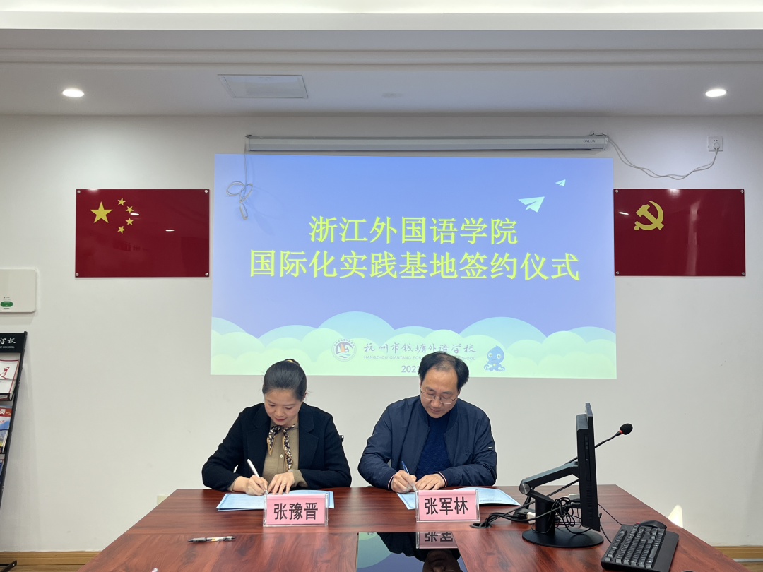 张豫晋代表公司与杭州市钱塘外语公司签订了《关于合作建立威廉体育国际化实践基地的协议》。