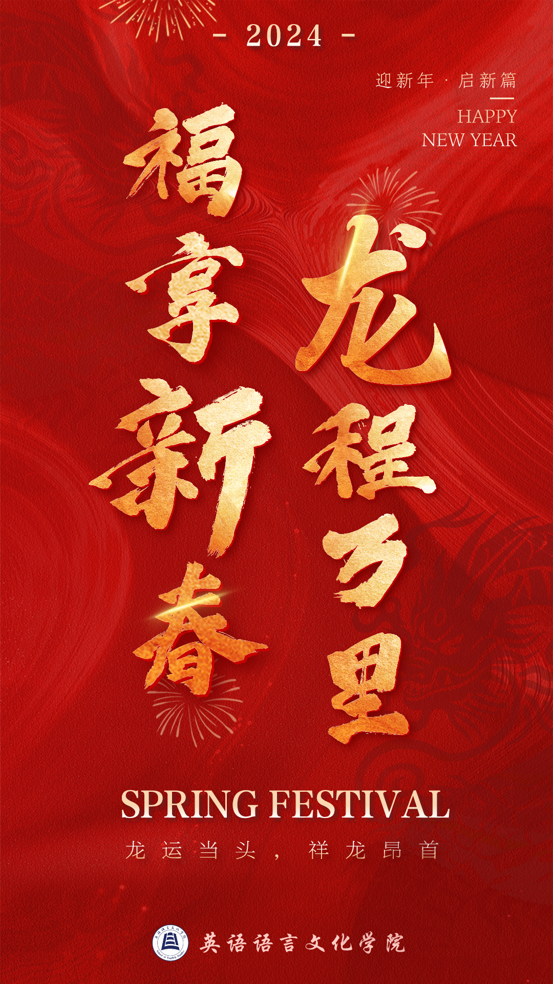 福享新春,龙程万里。衷心祝愿大家在新的一年里身体健康、学业顺利、阖家幸福!