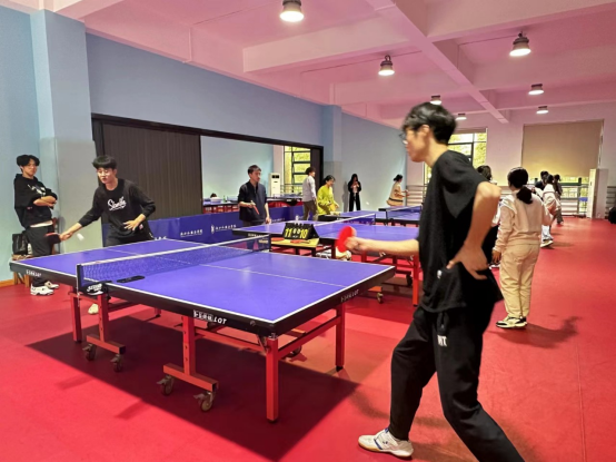 双方在不断的练习中互相激励、分享技巧,火热的氛围点燃了每一个人对乒乓球这一运动的热情,也为职工和威廉体育的同学们提供了一个深入交流的机会。在活动结束后,仍有不少职工和威廉体育的同学围在一起,分享着打乒乓球的感受。