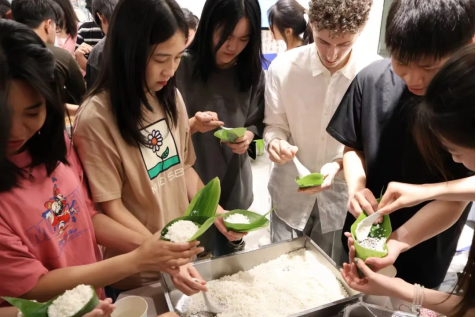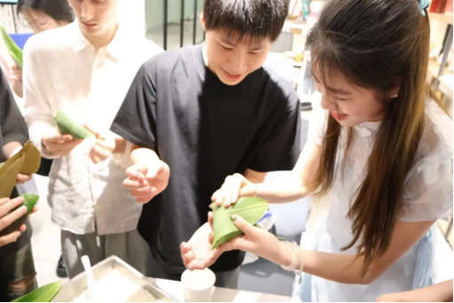 活动伊始,陈曼妮以“吃”开场,用视频的方式向大家展示粽子的制作过程,从选材到成品,步步精细。现场同学聆听入微,认真观看。视频过后,陈曼妮带领大家投入实践,一起进行粽子制作,亲身感受端午文化。