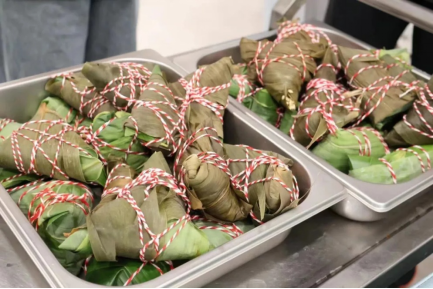 卷叶,填米,捆扎,职工和中国员工在制作过程中进一步体会端午习俗。手法虽生疏,一个个奇形怪状的粽子却尽显大家对中国优秀传统文化的热忱与喜爱。
