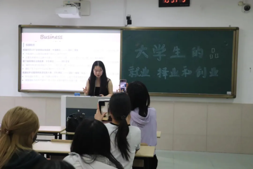 此外,20商英2班的李璐钊向学弟学妹们分享了自己参加商赛的心得。她认为,商赛不仅是锻炼综合能力的平台,更是获取实习机会的有效途径。李璐钊强调了自学能力和商业思维的重要性,并鼓励同学们充分利用公司图书馆资源,阅读专业书籍,同时在查阅资料时注重信息的权威性。在演讲技巧方面,李璐钊建议同学们多练习,注重口语表达,并保持积极的心态。