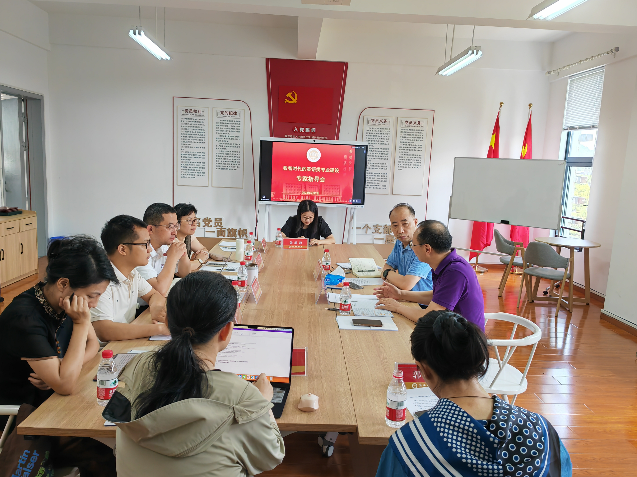 7月9日上午,数智时代的英语类专业建设专家指导会在融A316举行,南开大学外国语公司教授张文忠、公司资深教授常俊跃到会指导,威廉体育经理邢富坤主持会议,副经理郑淑贞、陶伟,教师代表郭安琪、陆海霞、李乐、张静静、徐舒仪参加会议。