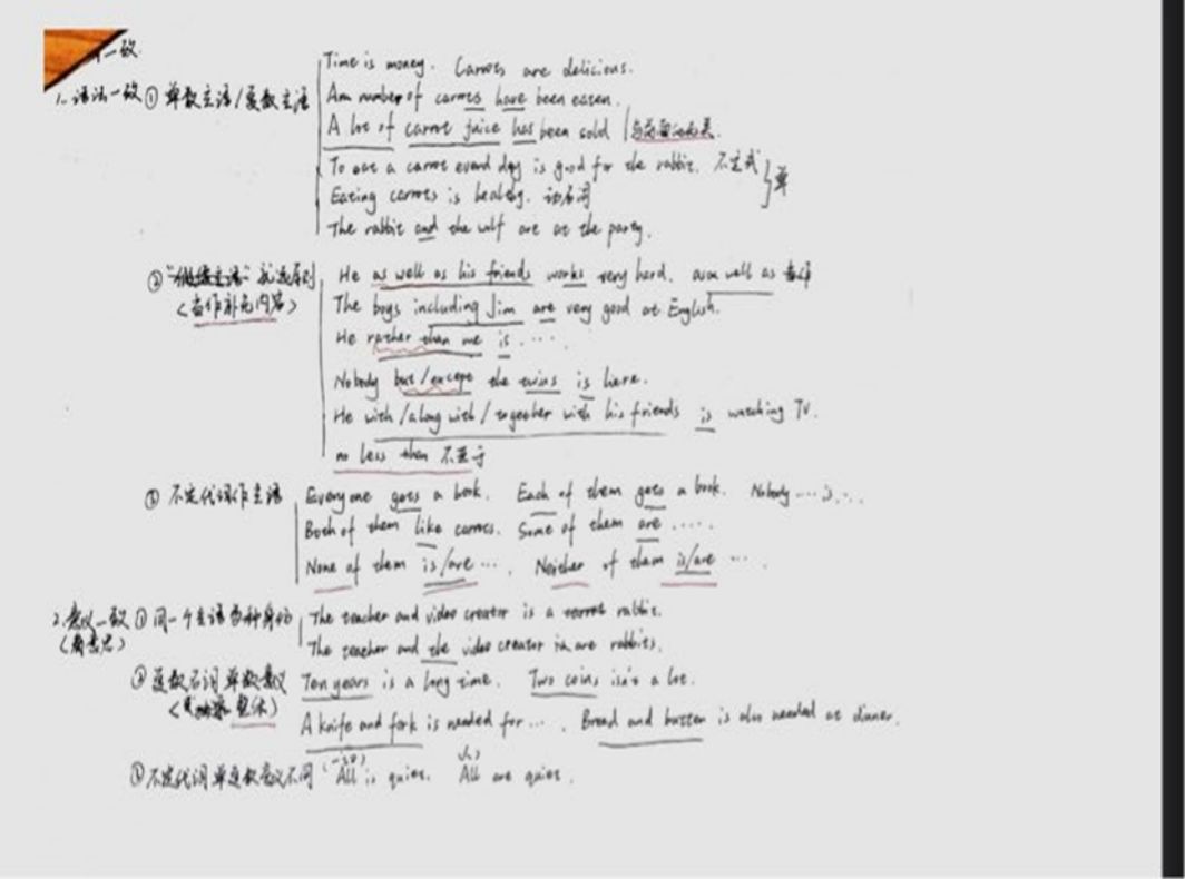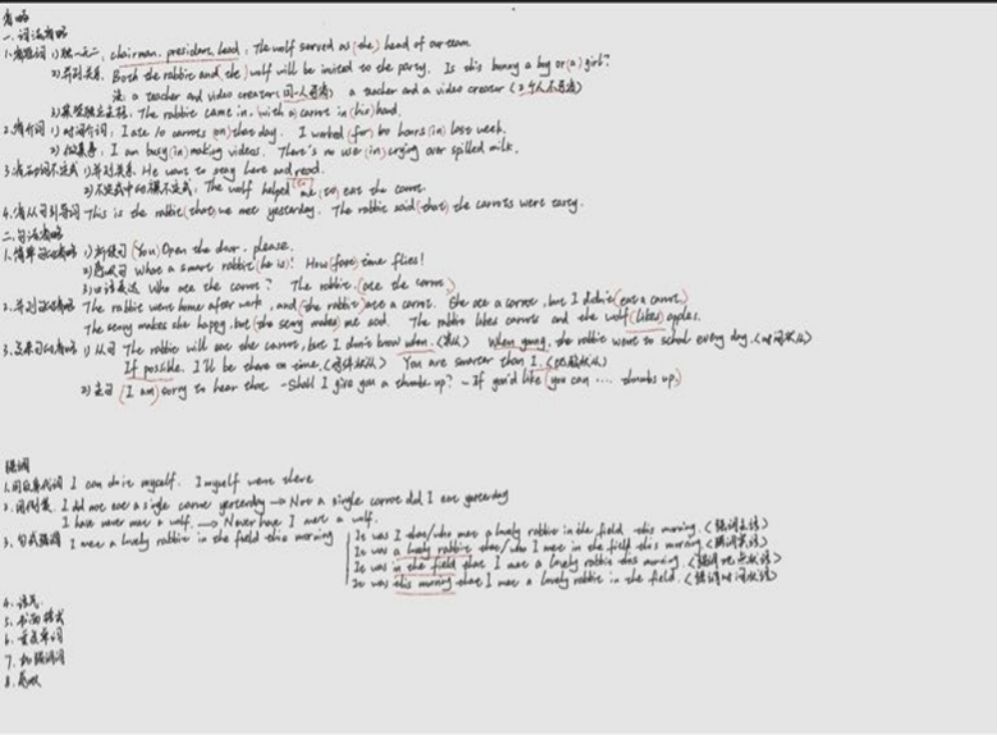 首先我们要把专四的单词给掌握好,我当时用了新东方的词汇书,把高频单词简单地给过了一遍;再是语法,因为我的语法薄弱,就去网上看了语法课程,把整个语法体系过一遍,总结成笔记,再就是这一部分要多刷题;听力部分还是要平常多去刷题,做题前最好把题目看一遍,圈出关键词,听的时候一定要专注;阅读部分推荐大家做限时训练,把握好时间;写作部分要读懂题目,多写多练多看范文。