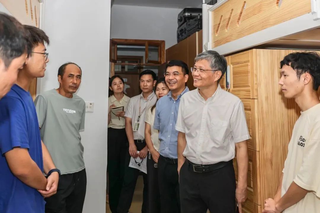 在走访过程中,宣书记遇到了一位来自甘肃兰州的同学,该同学希望学成之后回到家乡,用学到的知识为家乡多做贡献。宣书记深表赞赏,并用习近平总书记青年时期在梁家河生活与成长的故事来勉励新生立下志向,尽快适应老员工活,规划好未来的学习生活。