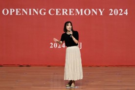 2024级英语(师范)专业新生曹妤颉同学作为新生代表发言。她分享了自己对英语的热爱与梦想,号召同学们在大学里脚踏实地、拼搏努力,做有理想、敢担当、能吃苦、肯奋斗的新时代好青年,在浙外威廉体育开启新的篇章!
