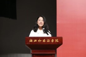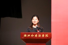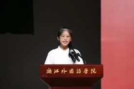 2021级英语专业伍桢颖同学作为老生代表发言。她回顾了自己在浙外通过学习和实践,逐渐找到方向的成长历程,鼓励新生们珍惜大学这一自我探索与世界观构建的黄金时期,勇于尝试,不畏挑战。