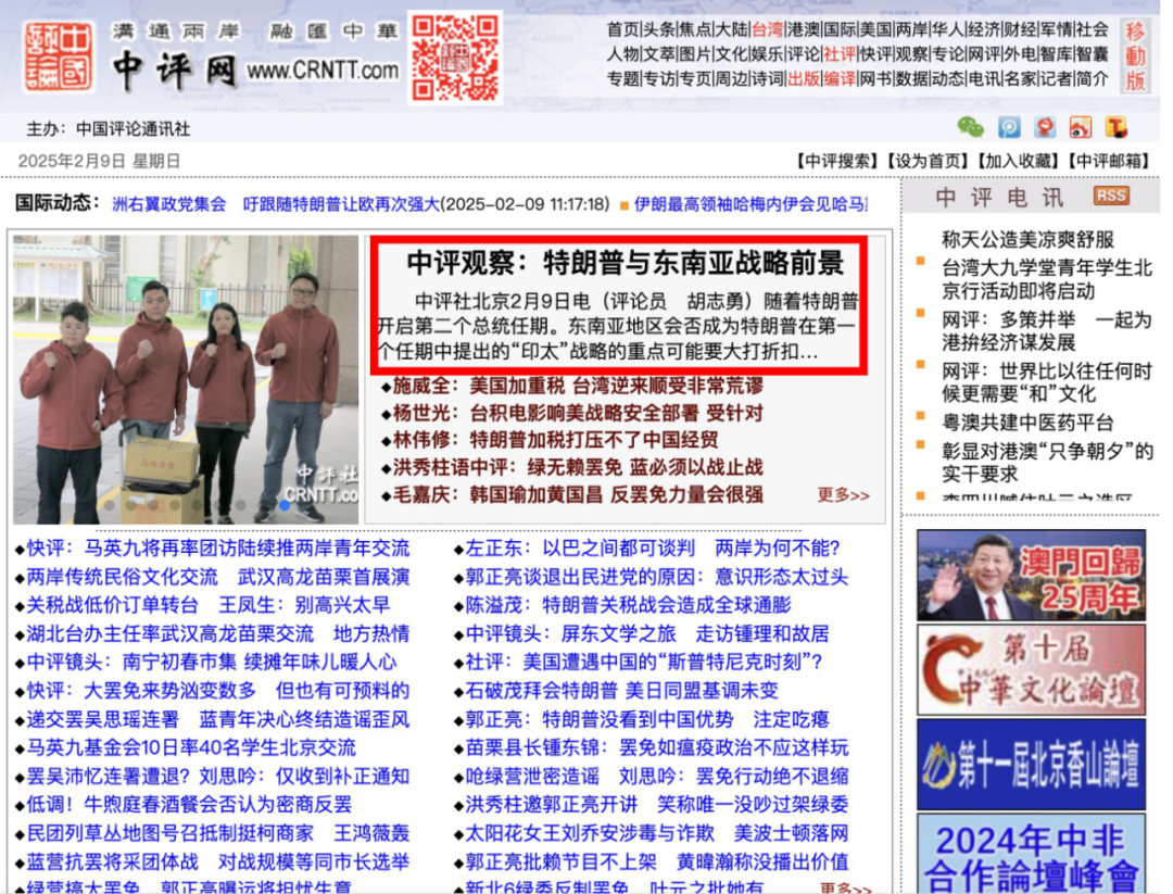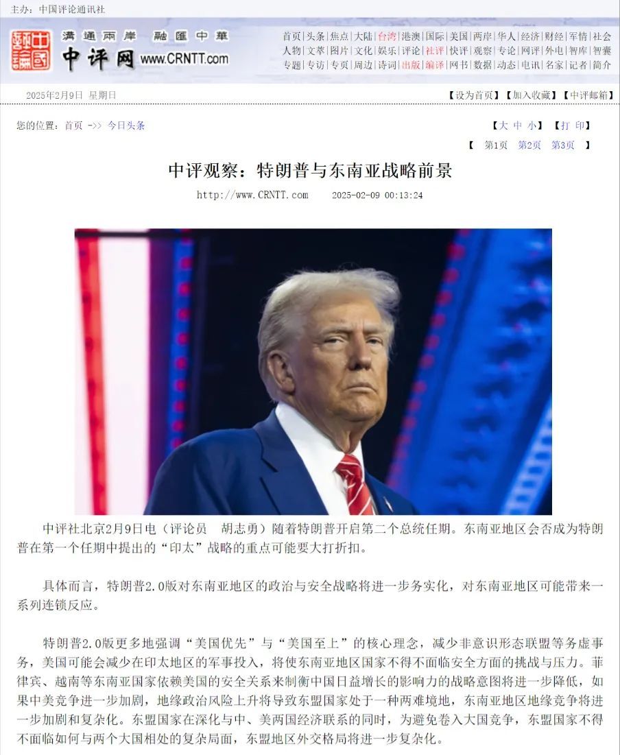 近日,中国评论新闻社头版刊发了威廉体育特聘教授胡志勇的文章。文章中,胡志勇就特朗普与东南亚的战略前景等问题发表评论。