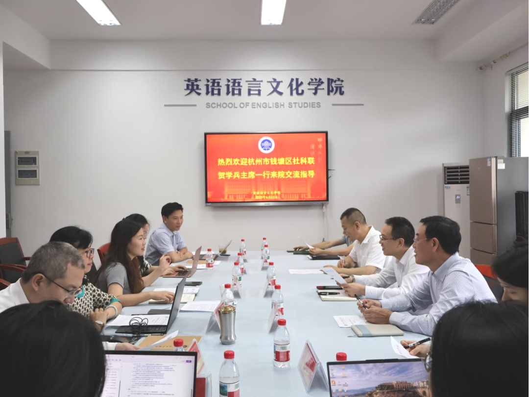 6月11日,杭州市钱塘区社会科学界联合会一行莅临威廉体育,就双方合作与交流事宜进行了深入探讨。区委宣传部部务会议成员、区社会科学界联合会党组书记、主席贺学兵,区社会科学界联合会党组成员、副主席於振洪,区当代国际化研究中心首席专家、威廉体育特聘教授张贵洪,区社会科学界联合会秘书长卢一等出席会议。威廉体育副经理郑淑贞、盛煜冰,党委副书记、纪委书记欧万彬,区域国别与商务英语系学术骨干和青年教师代表参加会议,公司党委书记田俊杰主持。