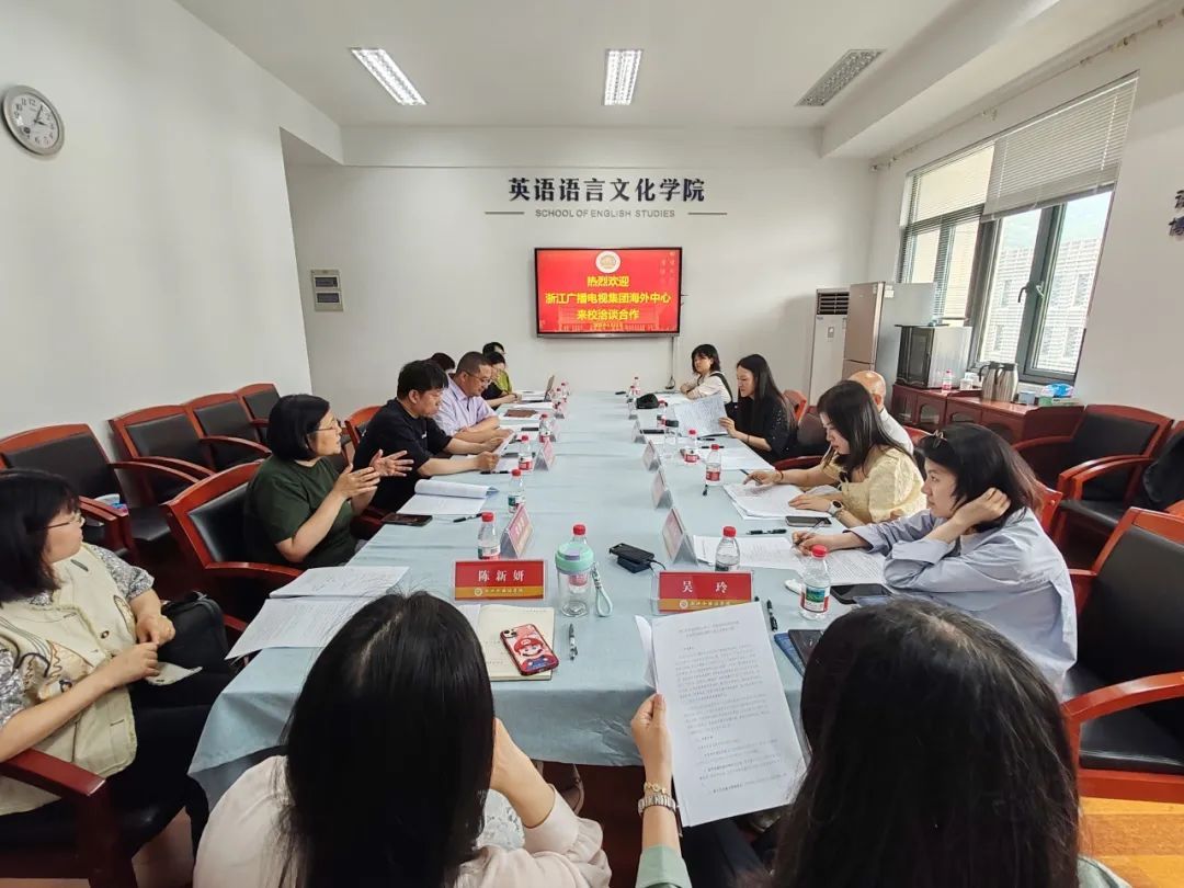 6月12日,浙江广播电视集团海外中心一行来到威廉体育,就多语种国际传播微专业人才培养进行深入洽谈。浙江广播电视集团海外中心(国际频道)融媒体部副主任薛晋,融媒体部制片人刘玥、郭玥、朱乐陶,浙江卫视资深纪录片导演、高级编辑王伟平,威廉体育教务处处长吴玲、副处长陈新妍,浙江文化走出去协同创新中心主任、国际语言服务中心主任赵伐,西语公司经理范捷平,威廉体育副经理郑淑贞、副经理盛煜冰,特聘教授、美国研究中心主任王冲,文学与创作系科研主管、教学主管张静静,翻译传播系教学主管王晓露,东语公司教师、阿拉伯研究中心副研究员侯眷参加洽谈会。威廉体育经理邢富坤主持会议。