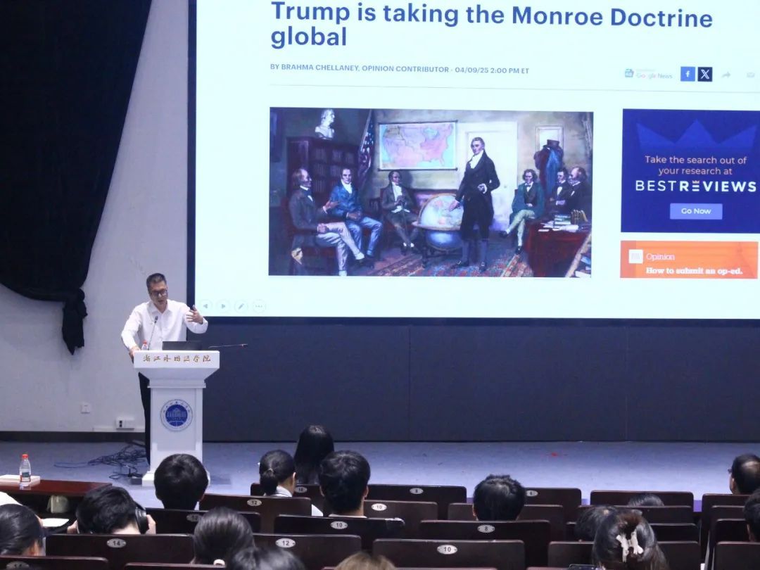 6月12日晚,浙外和北大“大师课”第十讲如约而至,北京大学社会科学部副部长、北京大学区域与国别研究院副经理章永乐教授以其独特视角剖析门罗主义的历史演变,揭示了美国从区域走向全球霸权,又在现实压力下被迫调整的战略变化。这折射出的美国霸权扩张与收缩的复杂轨迹和历史逻辑为我们理解国际关系的本质提供了重要启示。
