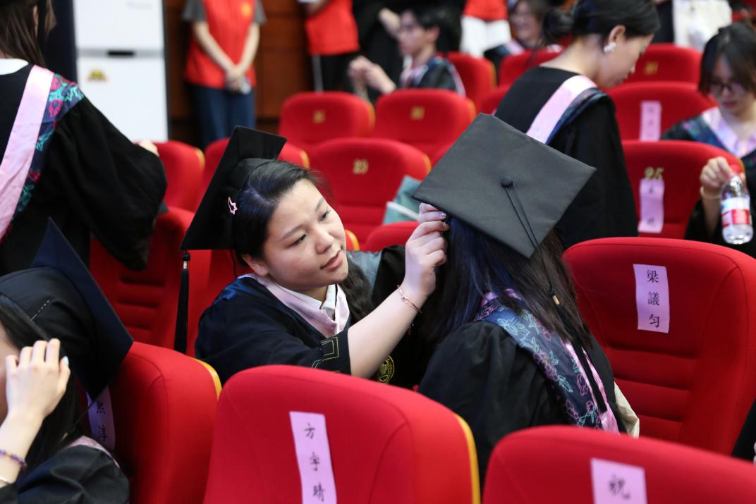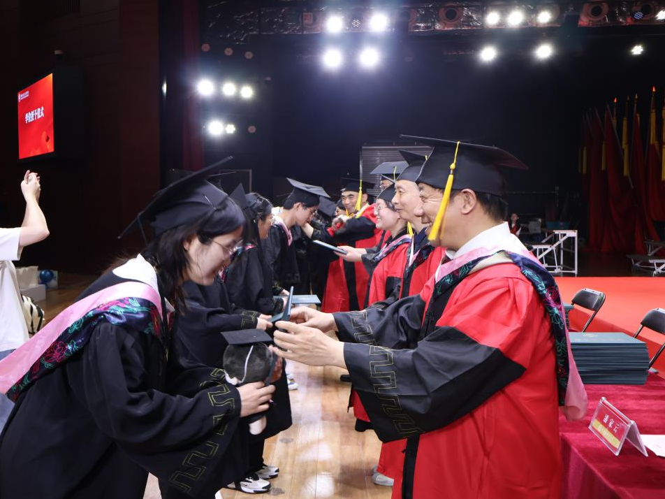 经理邢富坤宣读了2025届本科毕业生学士学位授予决定,主礼嘉宾们一一为毕业生郑重拨穗正冠、颁发证书。学位帽的流苏从右拨向左,意味着责任的交接与传承,激励着毕业生们肩负起新使命。