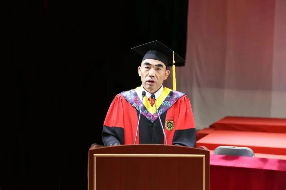 庄严肃穆的国歌奏毕,公司党委副书记严齐斌为全体毕业生致辞。他回顾了毕业生们在浙外期间的拼搏历程,强调了大家作为新时代外语人所肩负的特殊使命与责任。临别之际,他与毕业生们分享了三点希望:一要永葆求知热忱,勇立时代潮头;二要践行校训精神,涵养卓越品格;三要勇担时代使命,成就不凡人生。最后,他亲切嘱咐道:“无论你们走向何方,母校永远是你们最坚实的后盾、最温暖的港湾,期待你们常回家看看! ”