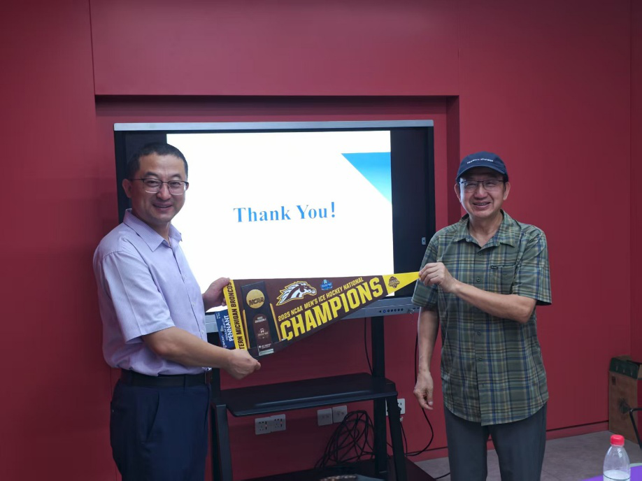现场举行了赠旗仪式:王晓钧教授代表西密歇根大学,向威廉体育赠予该校冰球赛事冠军纪念旗帜。这面承载着荣耀与温度的旗帜,寄托着中美文化交流的美好愿景,象征着跨越太平洋的情谊在文明对话中持续生长。