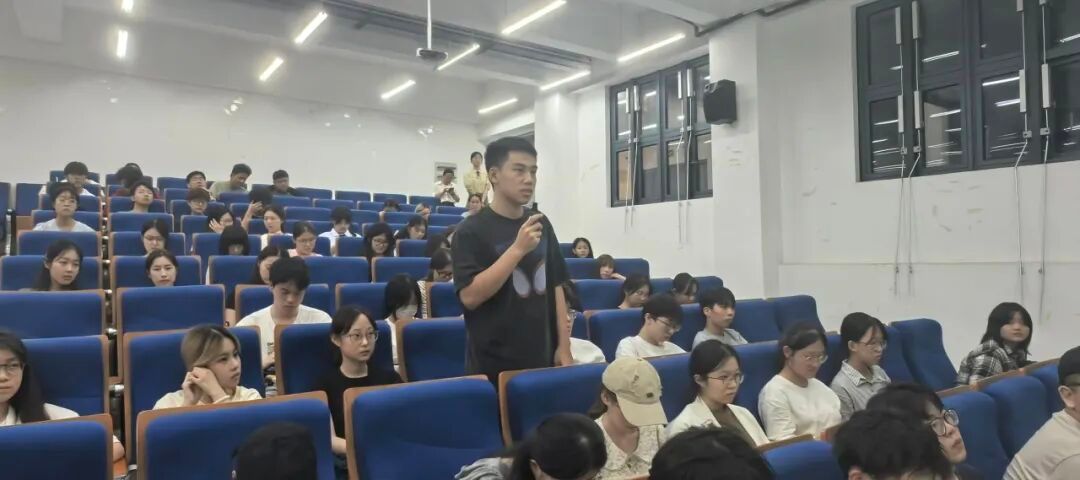 在互动环节,同学们积极提问,话题涵盖“35岁职业分水岭”“学业与实践如何平衡”等现实议题。陈溪一一予以细致解答,并勉励大家树立目标感、建立专业壁垒、培养个人品牌,同时始终保持开放心态与积极行动力。