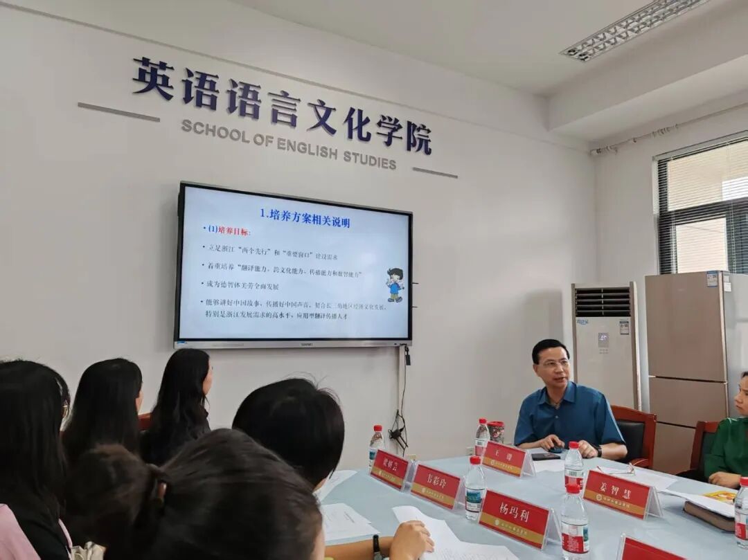 黎昌抱解读了翻译硕士专业学位硕士硕士生培养方案,明确以“翻译浙江”为重点,培养能将中华优秀文化传播出去的外语人才。