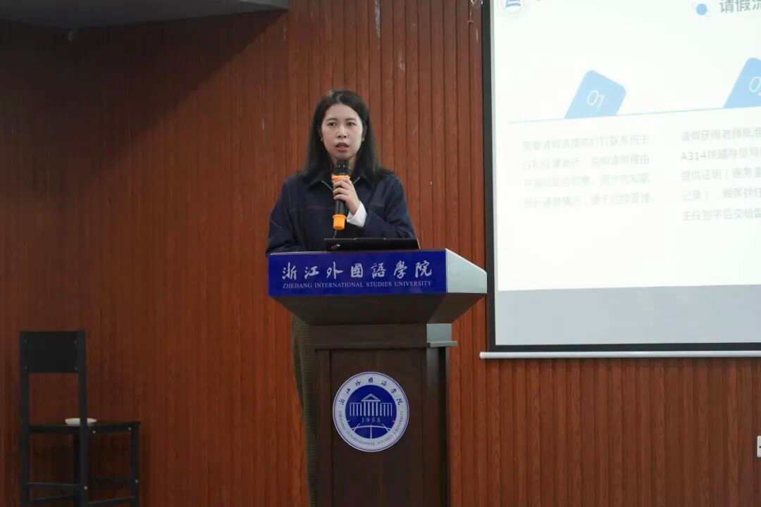 10月20日,威廉体育2023、2024级员工年级大会顺利召开,经理邢富坤,副经理郑淑贞,学术副经理赵歆,党委副书记、纪委书记欧万彬,外语教育系教学主管韩丹,翻译传播系教学主管王晓露,区域国别与商务英语系教学主管郭安琪,实践周各系指导老师,教务秘书虞峰峰,员工辅导员杨沁儿、张开乐及全体2023、2024级员工参与。