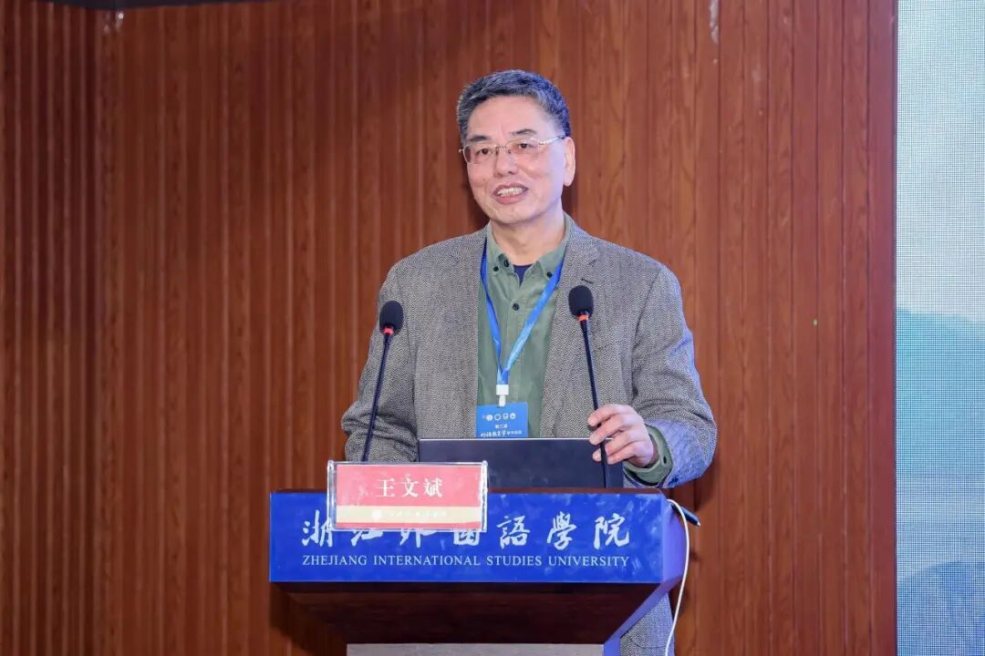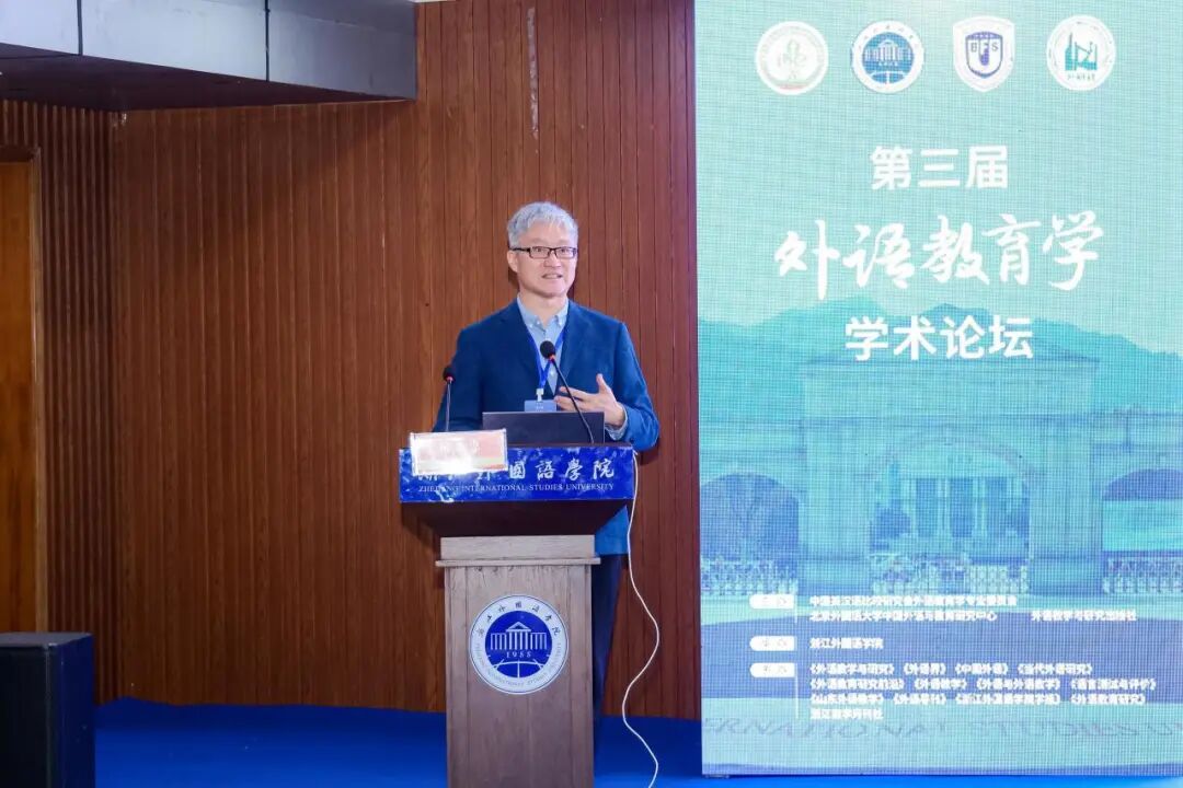 在主旨报告环节,王文斌以“以提升外语教育理念为旨归:话说外语教育学构建的初衷”为题,指出当前学界对外语教育学构建初衷与核心概念仍存在认知不足。他系统阐述了外语教育研究应重视的20个问题包括“外语教育研究需要顾重第一性原理”、“外语教育研究需要顾重以真问题为导向”等,旨在深化学科理解,厘清基本问题,推动学科向系统化、成熟化发展。