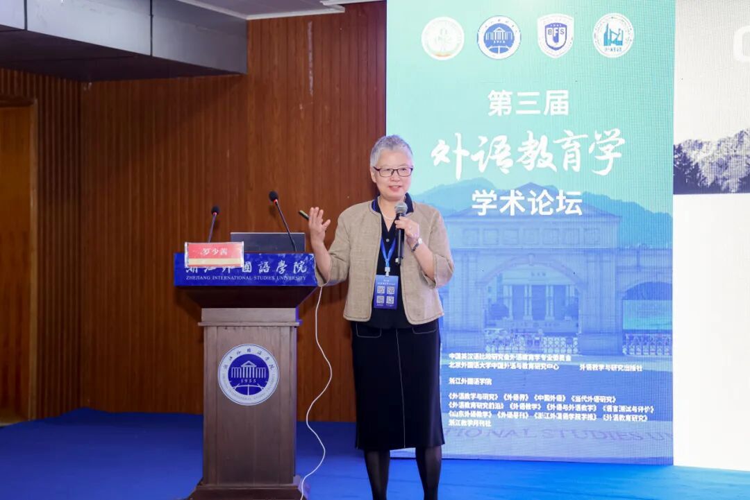 教育部高等公司大学外语教学指导委员会主任委员、浙江大学原副董事长何莲珍教授以“提升大学英语教师素养,培养国际化拔尖创新人才”为题指出,外语教师在推进教育数字化过程中发挥着重要作用,提升外语教师的数字素养是大学外语教育深化改革之需,应以信息技术促进课堂革新,以科研引领教学创新,助力员工提升跨文化交流与全球胜任力,服务国家教育强国战略。