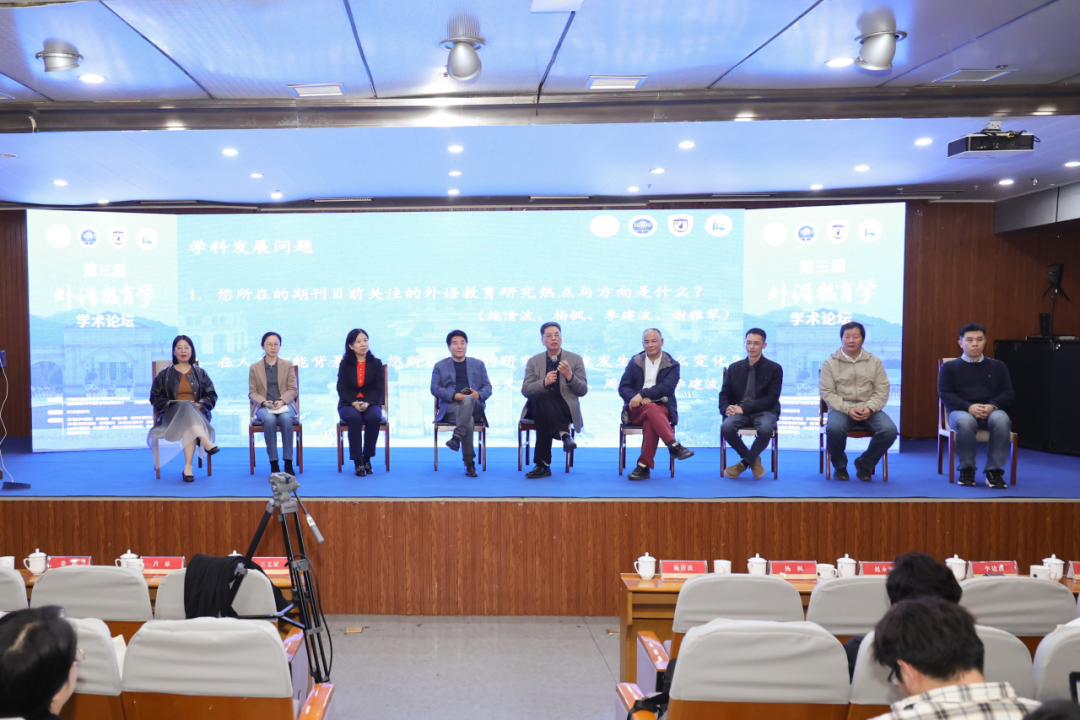 会议开始前,举行了主编论坛。王文斌教授、施清波副编审、肖琼编审、杨枫教授、徐浩教授、赵永刚教授、周光磊副教授、李建波教授、谢雅琴副编审,围绕“人工智能时代的外语学科发展、青年研究者培养、办刊与学术规范”展开研讨。他们首先介绍了《外语教学与研究》《外语界》《中国外语》《当代外语研究》《外语教育研究前沿》《外语教学》《外语导刊》《威廉体育学报》、浙江教学月刊目前关注的外语教育研究热点与方向,以及人工智能背景下,期刊研究关注点发生的变化;随后和与会教师探讨了中文外语类期刊如何帮助青年教师提升研究与发表质量,以及面对人工智能,青年学者应如何保持原创性与学术深度,并就人工智能辅助写作及数据生成对中文期刊的审稿流程和学术伦理带来的挑战,以及期刊如何平衡技术便利与学术诚信进行了细致的解答。主编论坛由中国英汉语比较研究会外语教育学专业委员会秘书长、北京外国语大学张虹教授主持。