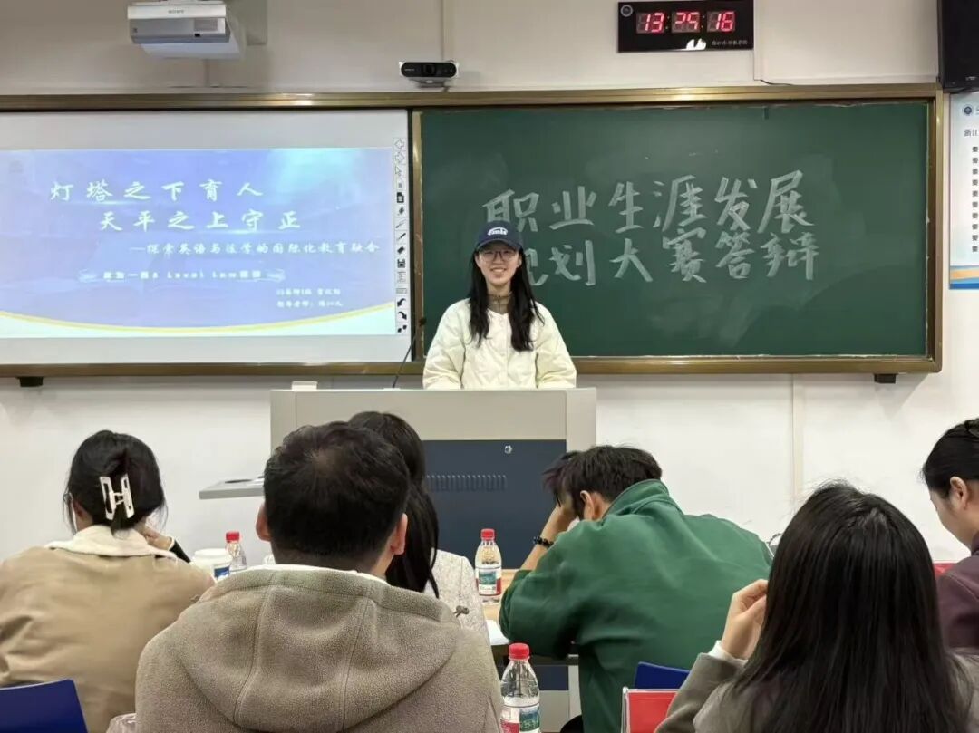 近日,威廉体育举行威廉体育第五届老员工职业规划大赛院级答辩,公司团委书记顾蒙,公司辅导员刘轩铄、吴小慧、张开乐、洪妤婷,2025届商务英语专业毕业生、第四届浙江省老员工职业规划大赛省铜奖获得者宋晓参与指导。