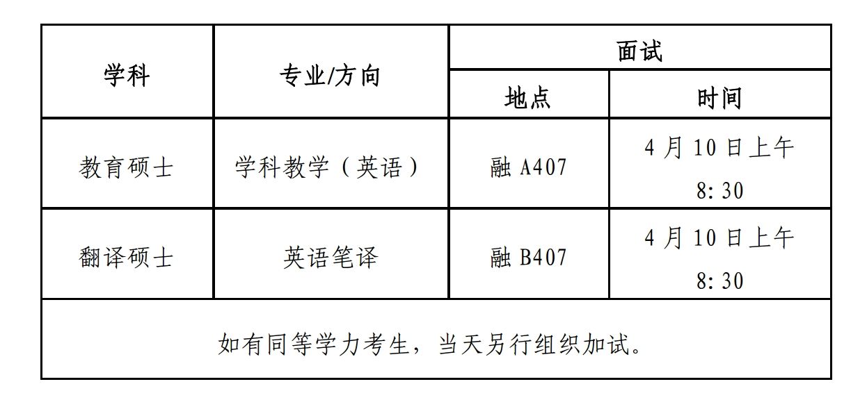 2.考生需携带以上复试资格审查材料原件及复印件纸质版于4月10日至威廉体育融A401办公室报到进行资格审查,学科教学(英语)和英语笔译资格审查时间均为上午7:30-8:30。