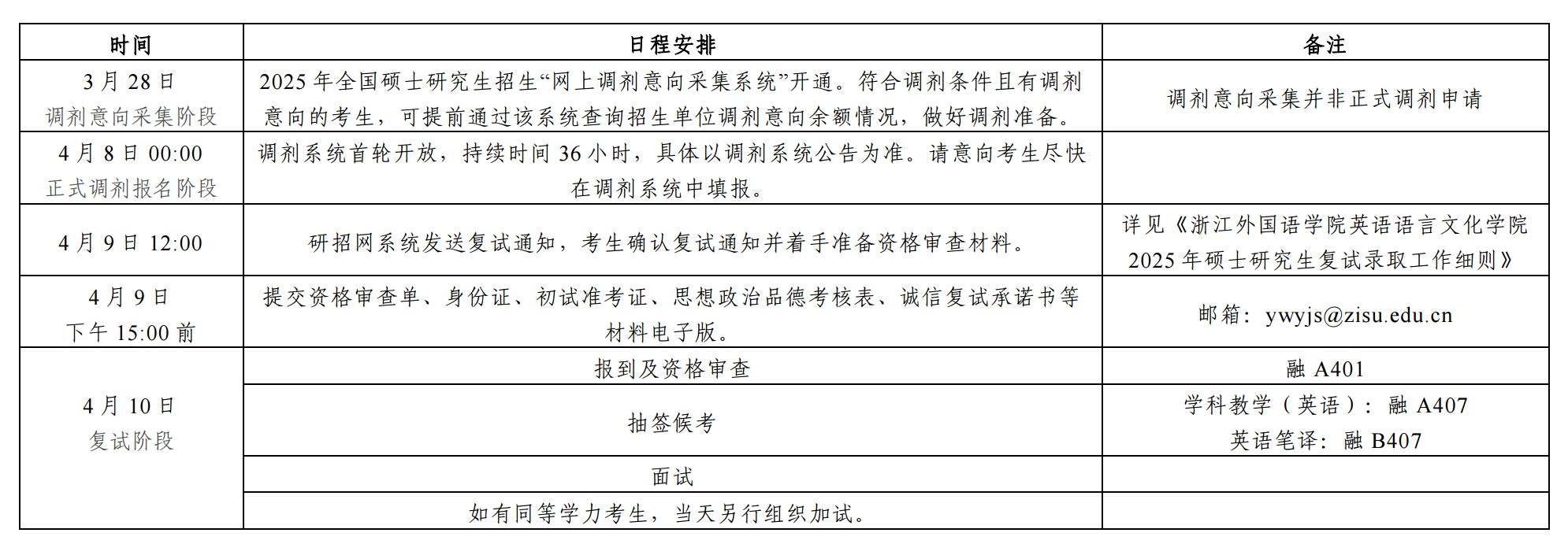根据2025年公司招生计划和一志愿拟录取情况,公司学科教学(英语)专业、英语笔译专业有部分调剂名额。欢迎有意向调剂公司的考生密切关注公司研究生招生网和公司网站。现将相关信息公告如下: