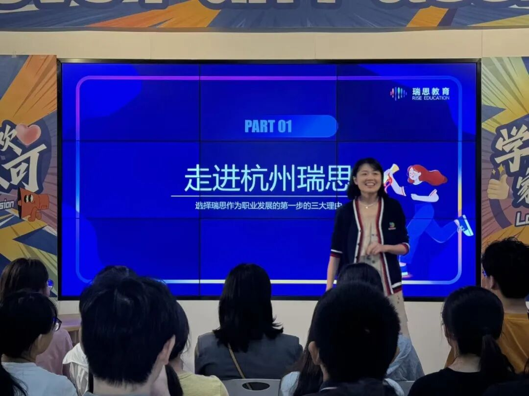 在宣讲环节,组织发展经理Suvi老师和员工们分享了走进瑞思的三大理由,她指出瑞思教育致力于培养3-12岁儿童的综合能力,通过素质教育帮助孩子成为敢于提问、勇于探索、自主学习、自我管理、自信表达的未来人才。同时,瑞思拥有一群充满生命力、相互激励的团队成员,重视共同目标下的协作与成长,营造开放、积极的工作环境。
